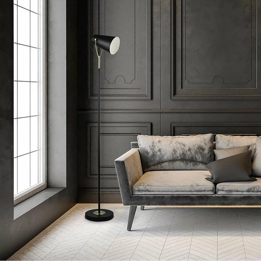 Lampadaire Pied et Abat-jour en Métal Noir Détails Dorés de la gamme Studio.
