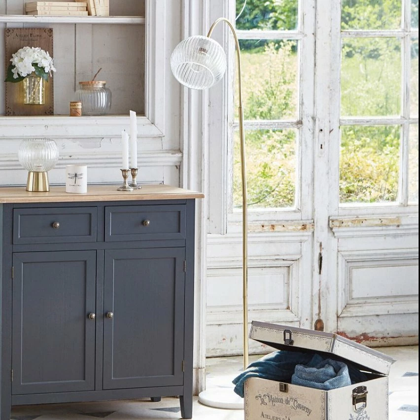 Lampadaire en Verre Pied en métal Base en Marbre H 150 cm —