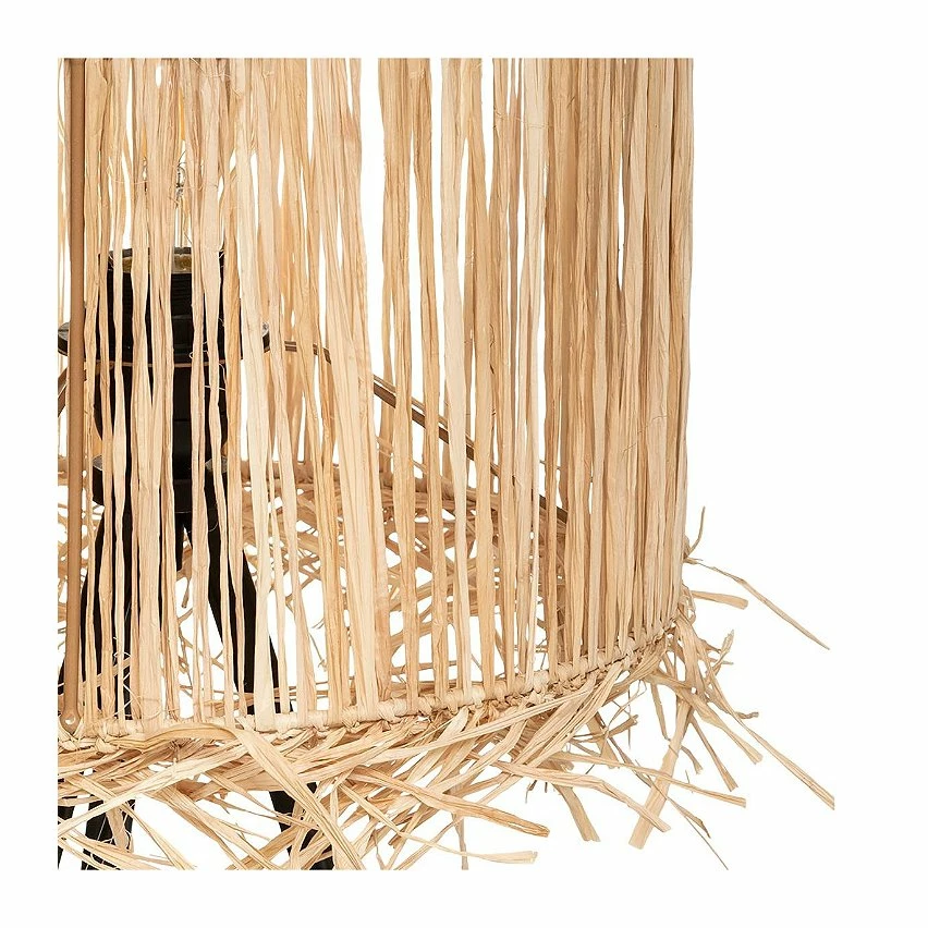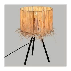 Lampe Trépied en métal et Abat jour en Raphia H 49 cm —