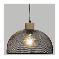 Luminaire Suspension en MĂ©tal Noir et Bois D 30 cm —