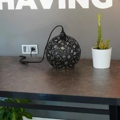 Cette lampe de table est la solution parfaite pour Ă©clairer votre maison ou votre bureau avec style. GrĂące Ă sa conception, il est idĂ©al pour les espaces de vie et de repos. Kit de montage facile Ă nettoyer et Ă assembler inclus. Couleur: Noir | Dimensions: 25x25x28 cm | MatĂ©riel: MĂ©tal | Puissance: 1 x E27, Max 100W | Poids du produit: 0,6 Kg | Ampoule: Non incluse| Poids de l’imballage: 1 Kg | Nombres de boĂźtes: 1 | Dimensions de boĂźtes: 26x26x25 cm