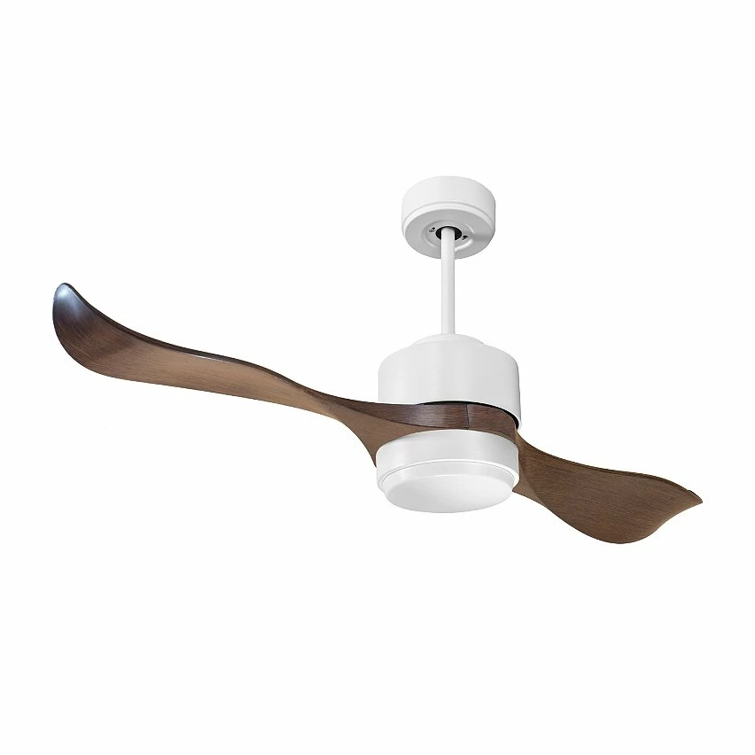 Le moteur à courant continu blanc DC4 permet des installations dans les plafonds jusqu’à 27º d’inclinaison et est servi avec deux tiges pour être installé à la hauteur appropriée (13,5 cm et 25 cm). Il est parfait pour 2 ou 3 pales, car il dispose d’une fonction auto équilibrée. Il prend également en charge le kit de lumière. Ce modèle est réversible, désestratificateur d’air, de sorte qu’en hiver, vous pouvez inverser ses pales pour que son mouvement déplace l’air chaud vers le bas, agissant en complément de votre système de chauffage et favorisant une consommation optimisée. Il comprend également un thermostat à sa base, de sorte que vous pouvez le programmer pour que le ventilateur fonctionne en fonction de la température ambiante.