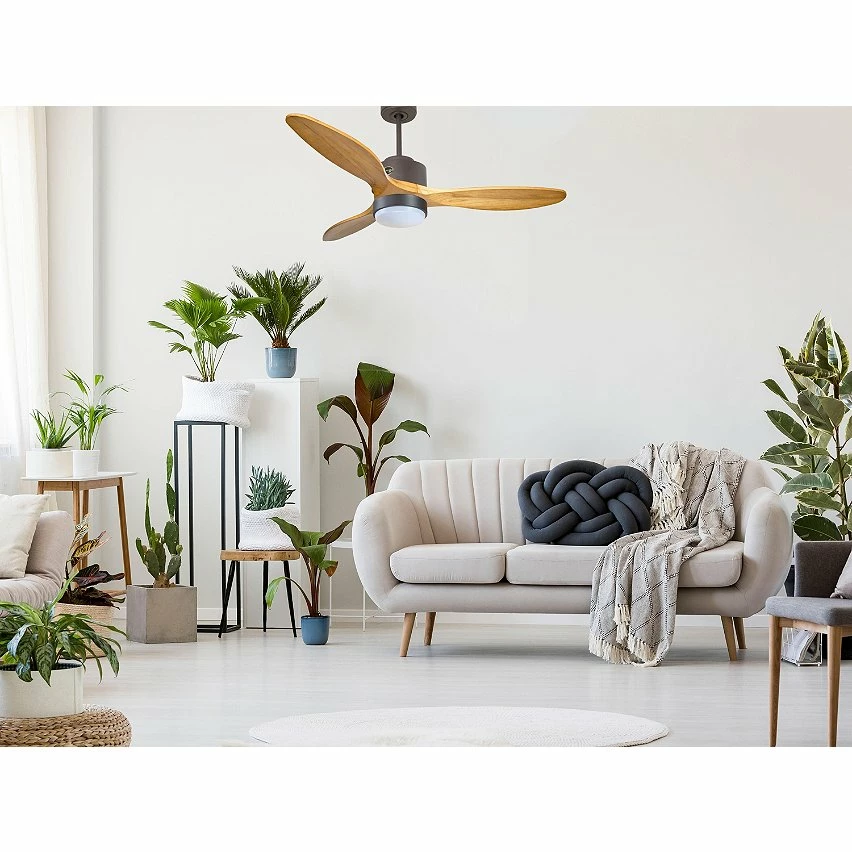 Les pales aérodynamiques en bois confèrent au ventilateur une grande légèreté, et ont été traitées à la main pour être totalement équilibrées et ne pas produire de vibrations. Ce modèle à 3 Pales de couleur marron a un diamètre de 132 cm et atteint une grande vitesse.