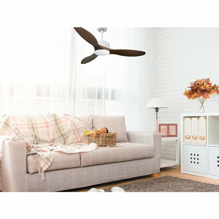 Le moteur Ă courant continu blanc DC4 permet des installations dans les plafonds jusqu’Ă 27Âș d’inclinaison et est servi avec deux tiges pour ĂȘtre installĂ© Ă la hauteur appropriĂ©e (13,5 cm et 25 cm). Il est parfait pour 2 ou 3 pales, car il dispose d’une fonction auto Ă©quilibrĂ©e. Il prend Ă©galement en charge le kit de lumiĂšre. Ce modĂšle est rĂ©versible, dĂ©sestratificateur d’air, de sorte qu’en hiver, vous pouvez inverser ses pales pour que son mouvement dĂ©place l’air chaud vers le bas, agissant en complĂ©ment de votre systĂšme de chauffage et favorisant une consommation optimisĂ©e. Il comprend Ă©galement un thermostat Ă sa base, de sorte que vous pouvez le programmer pour que le ventilateur fonctionne en fonction de la tempĂ©rature ambiante.