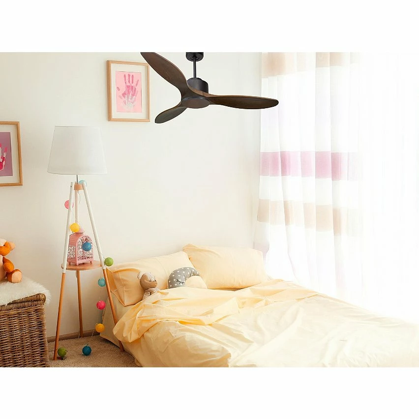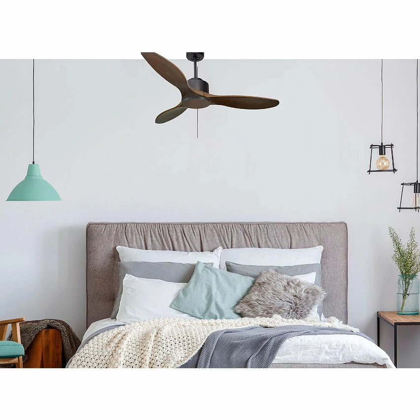 Les pales aĂ©rodynamiques en bois confĂšrent au ventilateur une grande lĂ©gĂšretĂ©, et ont Ă©tĂ© traitĂ©es Ă la main pour ĂȘtre totalement Ă©quilibrĂ©es et ne pas produire de vibrations. Ce modĂšle Ă 3 Pales de couleur cuivre a un diamĂštre de 132 cm et atteint une grande vitesse.