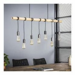 La suspension industriel en bois bois 150 cm Corentin ajoutera une touche industriel à la décoration de votre salon & salle à manger.
