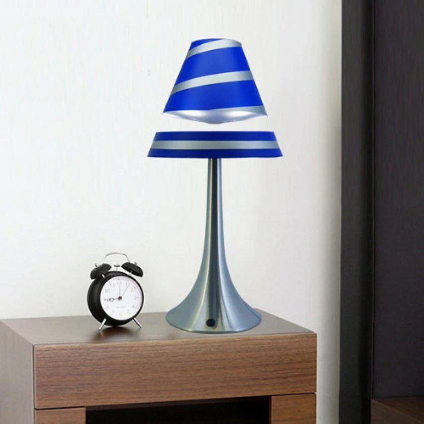 Le secret de ce luminaire repose sur son animation magique. L’abat-jour flotte littéralement dans l’air grâce à un aimant maintenu en lévitation à 2 cm au-dessus de la base par induction électromagnétique. Ce luminaire décoratif est de fabrication française, inventé par la marque Althuria.