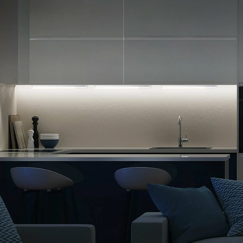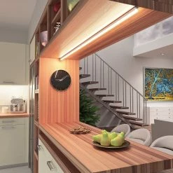 LED SMD: performances et économie d’énergie. 640 lumens pour seulement 8w de consommation! Lumière blanche naturelle 4000K: ni chaude ni froide; diffuseur anti-éblouissant: lumière diffuse et homogène sans ombres. Accessoires inclus (câble d’alimentation 150cm, connecteur 15cm, kit d’installation); avec interrupteur marche / arrêt. Longueur: 57,6 cm – Prolongeable en série jusqu’à 100w max; IP20: usage interne uniquement; excellent remplacement pour l’ancienne réglette néon T5. Structure en polycarbonate: sûre et robuste; produit certifié.